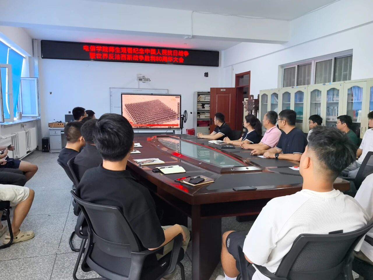 9月3日上午,纪念中国人民抗日战争暨世界反法西斯战争胜利80周年大会在北京天安门广场隆重举行,中共中央总书记、国家主席、中央军委主席习近平出席大会并发表重要讲话。学院部分师生在会议室集中观看了大会现场直播,并组织学院全体师生通过多种方式收听收看大会。