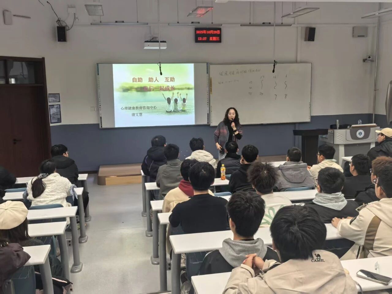 培训会开始时,蒲文慧老师为同学们详细介绍了大学生活的特点与挑战,特别是对于刚刚进入大学的同学而言,适应环境、建立人际关系、处理学业压力等都可能带来心理上的困扰。随后,蒲文慧老师围绕“大学生心理健康”展开讲解,介绍了常见的心理问题及其应对策略,强调了情绪管理和自我调节的重要性。