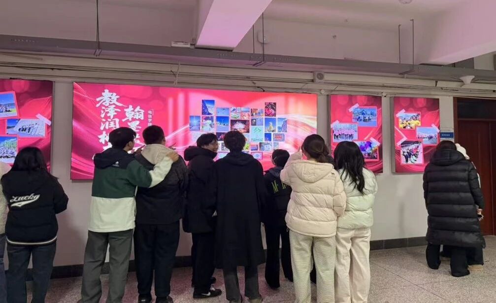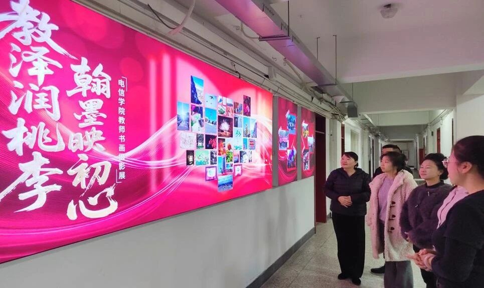 值得一提的是,一教五楼走廊设置的主题宣传展板,成为一教的“文化打卡点”。往来师生在此驻足品味,在翰墨光影中感受教育初心,让艺术感染力持续延伸。大家在作品前交流心得,在艺术中感受力量。
