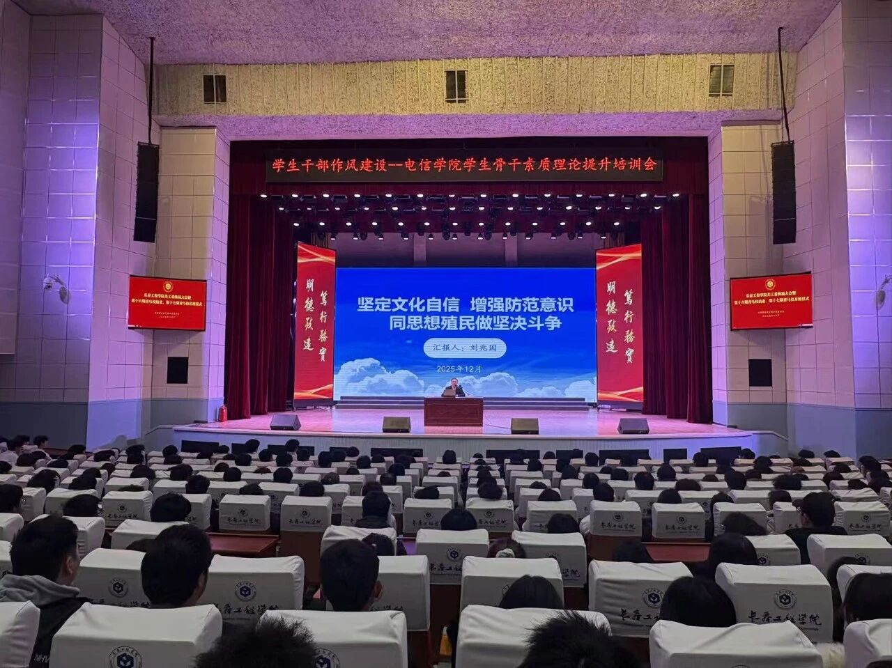 刘兆国老师为同学们作《坚定文化自信 增强防范意识 同思想殖民做坚决斗争》专题授课,阐释思想殖民概念、特征与渗透手段,剖析危害、分享反制实践案例,引导同学们坚定文化认同、提升思辨能力,守护意识形态安全。