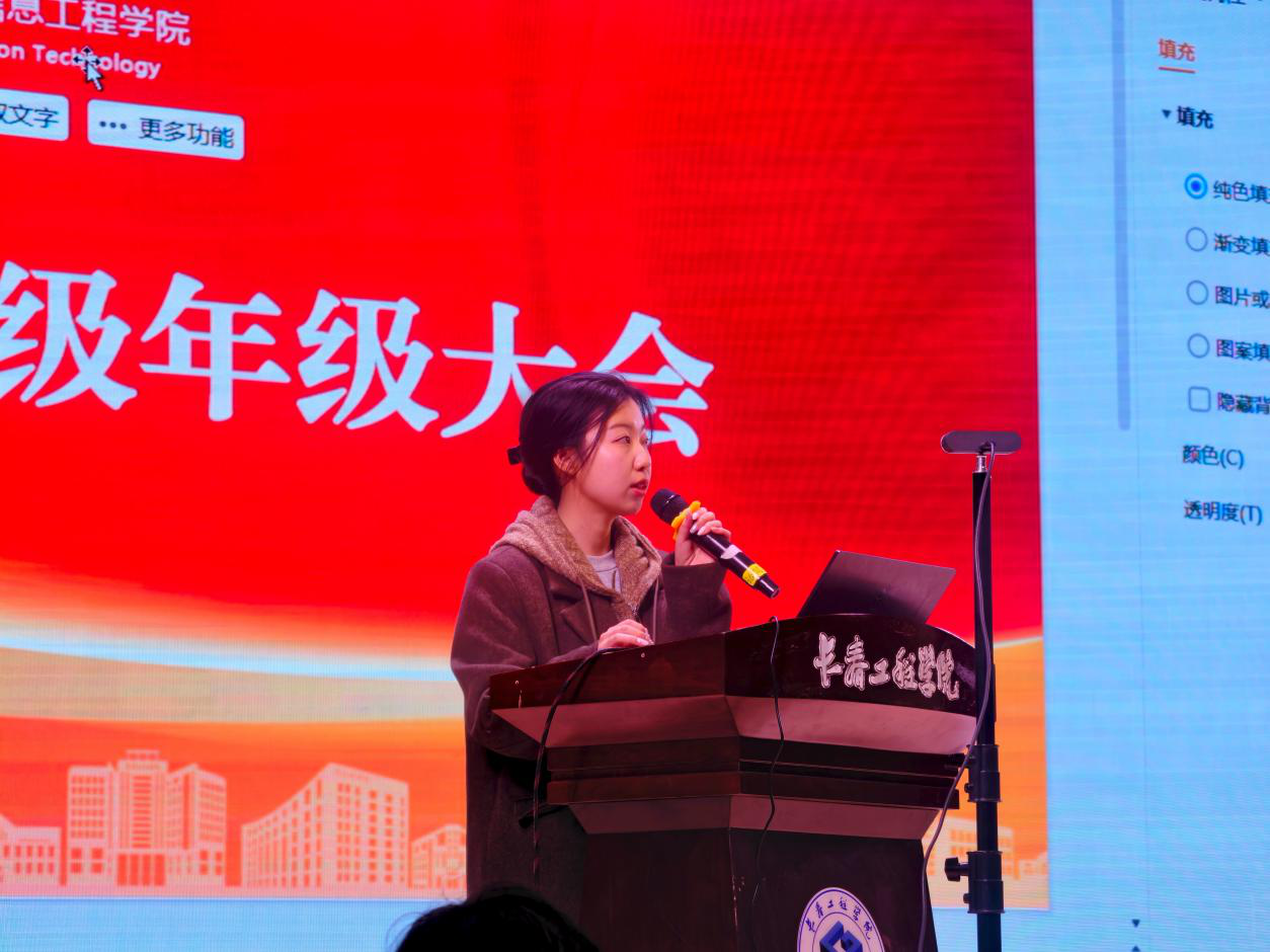 学院党委副书记王芙蓉在大会上指出,大学是规则意识成型期,学好民法典、网络安全法等常规法律法规是必修课,学院会组织多样活动助大家提升法律意识,懂法才能自我保护、不踩底线。同时,强化日常管理是成长关键,要规律作息、遵守纪律,经营好宿舍集体生活,做好学习与自我规划。并提出三点期望:做懂规矩、能自律、有温度担当之人。大学时光短暂,关键节点从现在开始,希望大家守好规则、养成习惯、提升能力,不负青春。